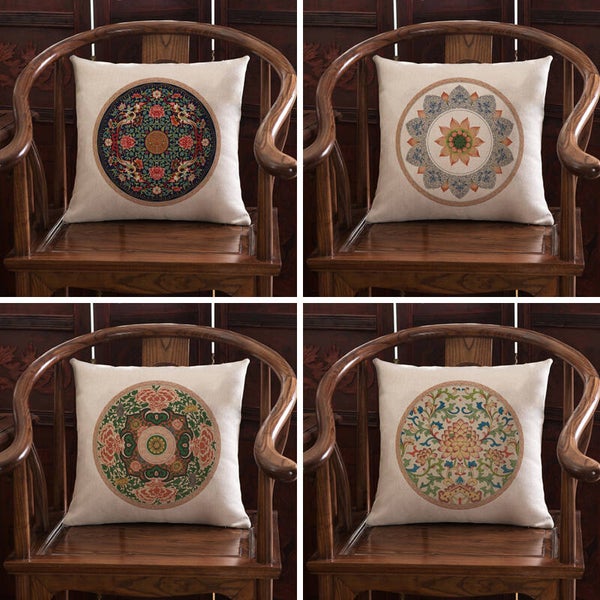 Kussenhoes met Japans traditioneel bloemen design, maat 45x45cm